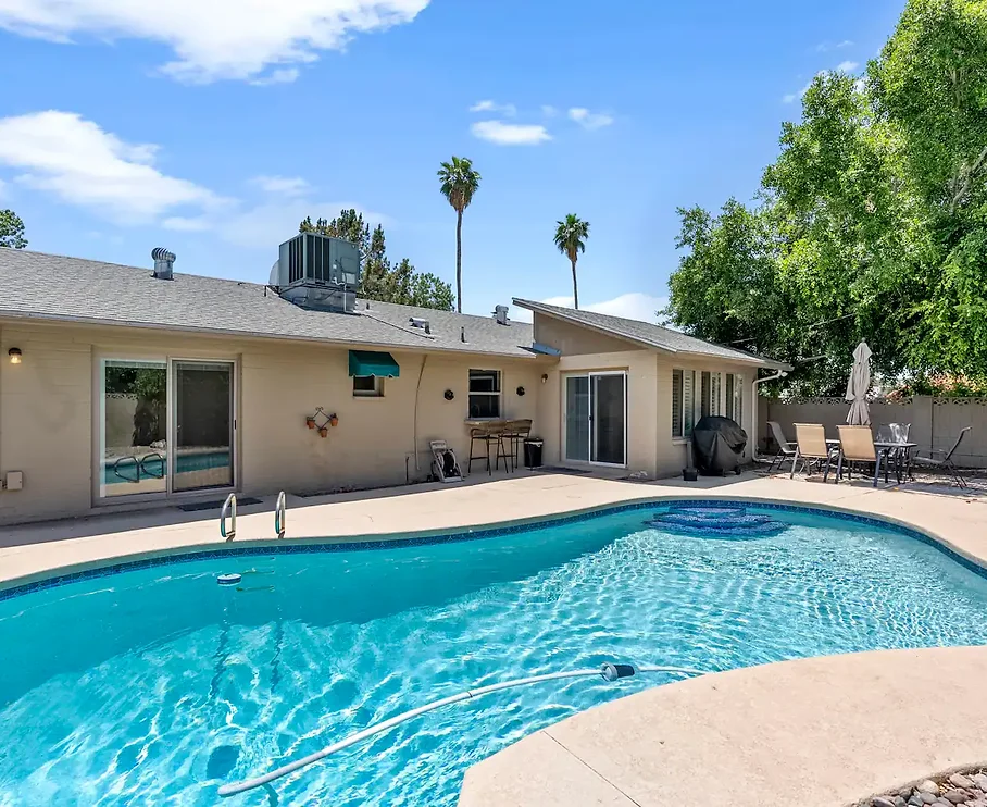 4-bed, 2-bath Scottsdale retreat boasting a captivating backyard oasis complete with a sparkling pool and cozy firepit, offering the perfect blend of relaxation and entertainment.